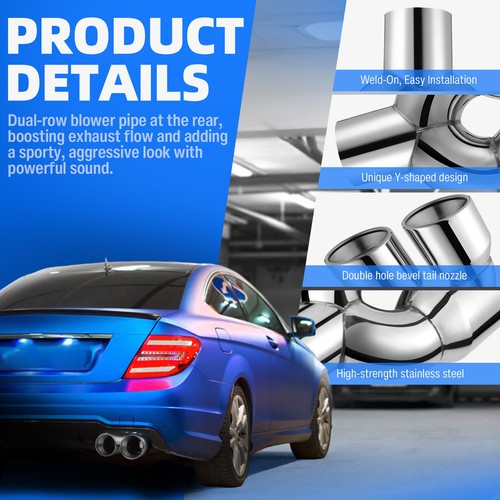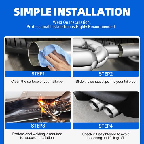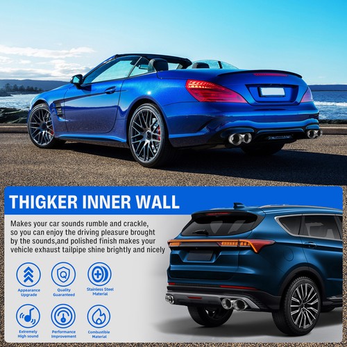DESIGN: The tail of the exhaust tip features an angle-cut and rolled-up design that is both aesthetically pleasing and ensures that it won't harm your hands.Additionally, a small hole at the bottom of the tip facilitates the drainage of water,reducing the likelihood of water accumulation and subsequently preventing rust