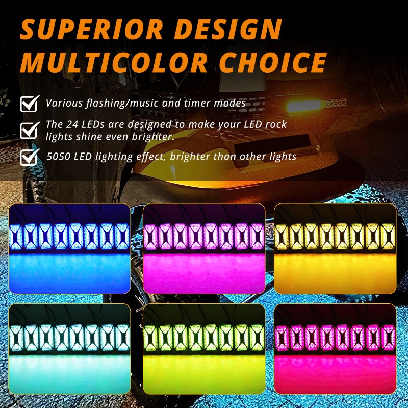 KEEPDSGN For Jeep Wrangler RGB LED Rock Lights Underglow Body Kit Neon Turn Signal Brake