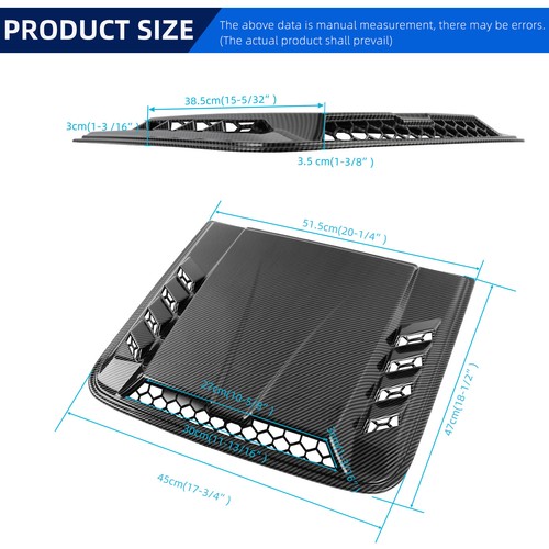 Decorative: This hood scoop is not real hood vents, just for decorative use, no substantial heat dissipation function, it is not recommended to install the car with real air vent.