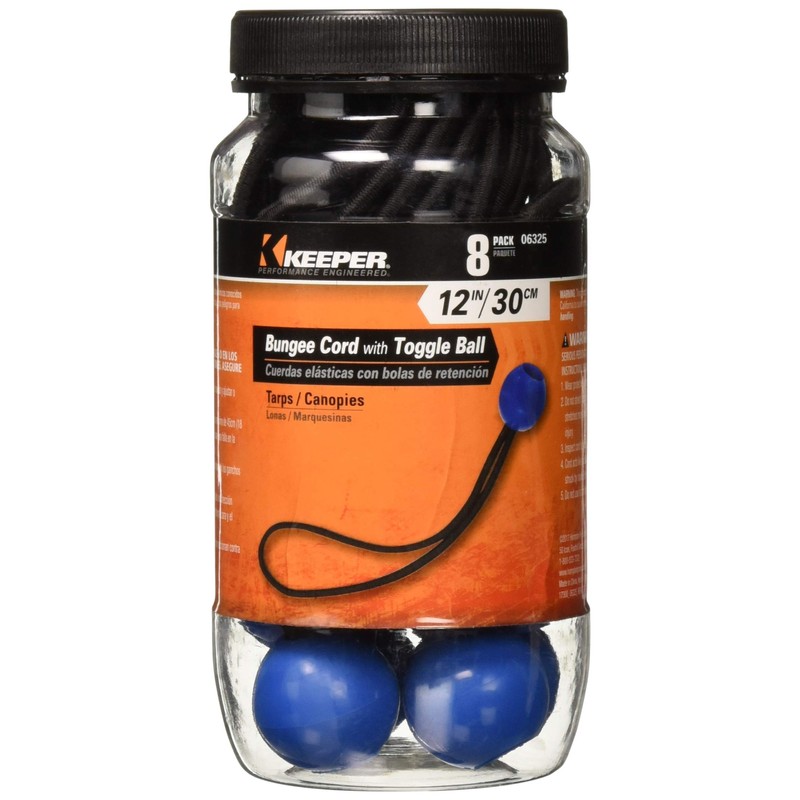 Keeper 06325 12" Toggle Ball Bungee, 8 Piece Jar