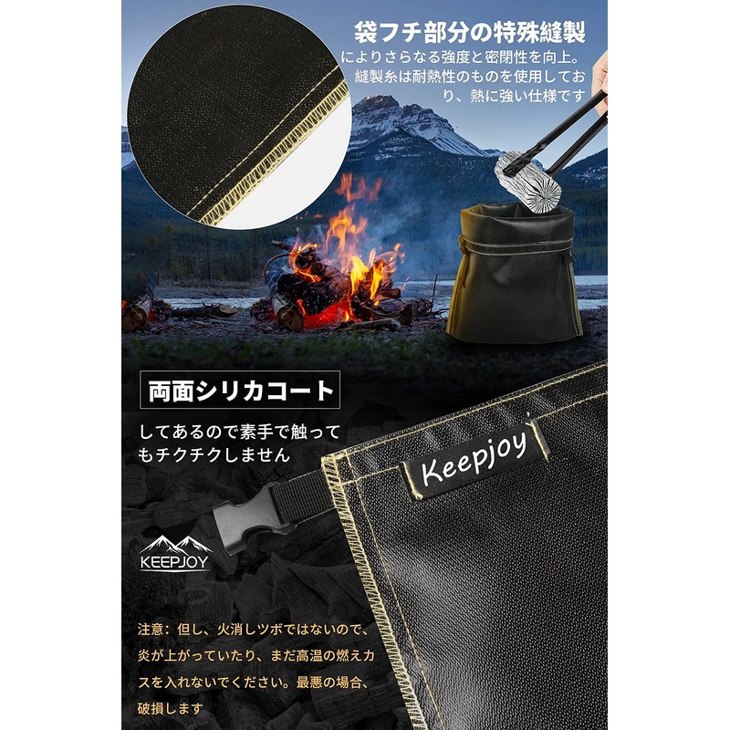 Keepjoy Fire Extinguishing Bag, Charcoal Storage Bag, Camping, Charcoal Processing Bag, Compact, Portable, Barbecue, Heat Resistant, Flame Retardant, Safe and Safe, 12.0 x 11.2 inches (30.5 x 29 cm), 12.6 x 13.2 inches (32 x 33.5 cm)