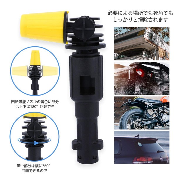 • Rotatable Nozzle: The yellow part can be rotated 180° up and down, and the black part can rotate 360° horizontally, so you can clean it even when you need it. Convenient for cleaning high pressure spray in horizontal directions of drain, rain and sewage pipes. Apply to car roof, back of body body, inside fenders, behind rooftop caps, behind air conditioners, etc