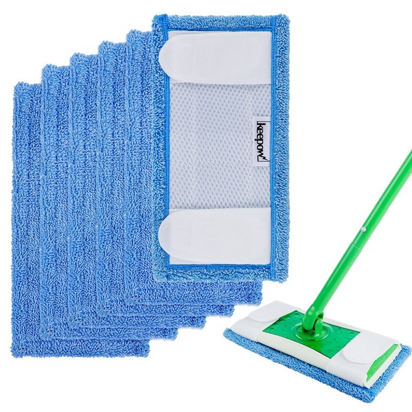 KEEPOW Microfiber Mop Pads for Swiffer Sweeper Mops, Reusable & Washable Dry Sweeping Cloths, Wet Mopping Cloths for Surface/Hardwood Floor Cleaning, 6 Pack (Mop is Not Included)