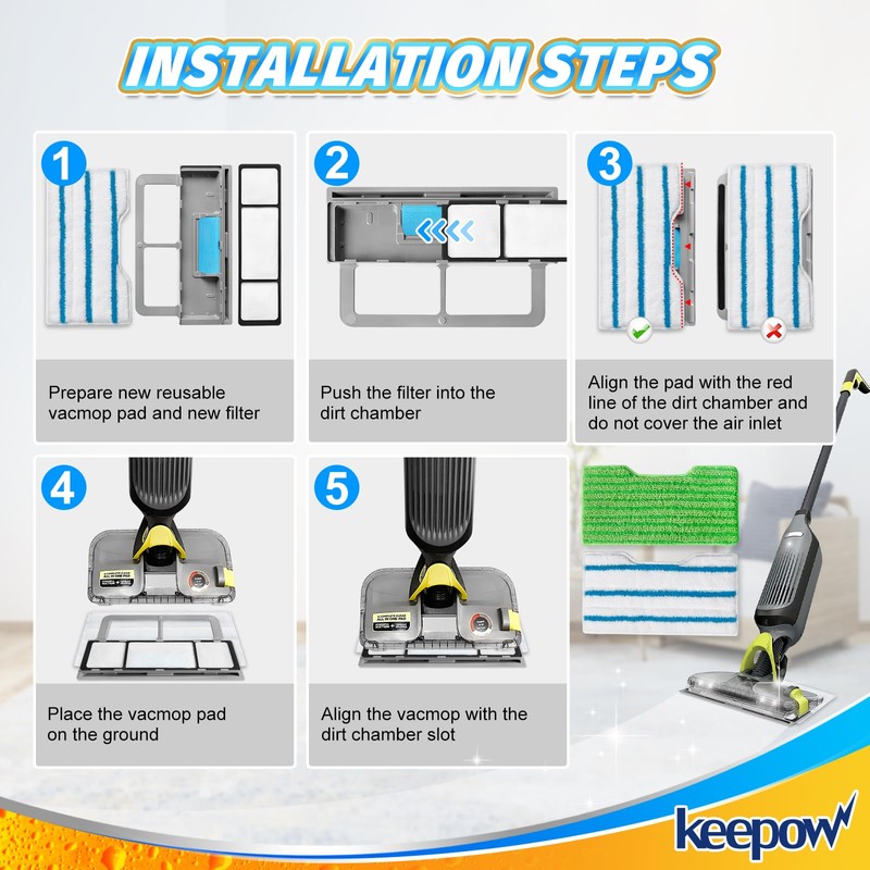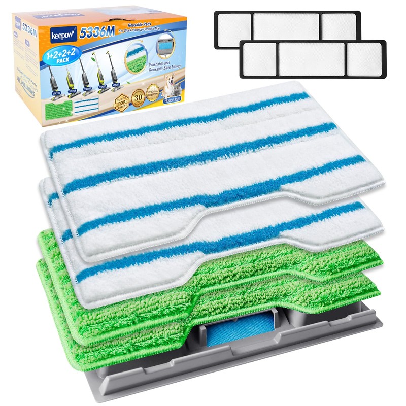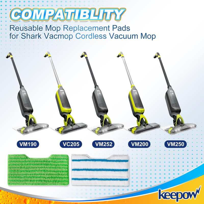 KEEPOW Reusable Mop Pads Refills, Vacmop Replacement Pads Compatible with Shark Vac Mop VM252 VM200 VC205 VM250 /QM250 VM190 VM200P12, Hardwood Floor Mop Pad with Upgraded Dirt Chamber (1+2+2+2)
