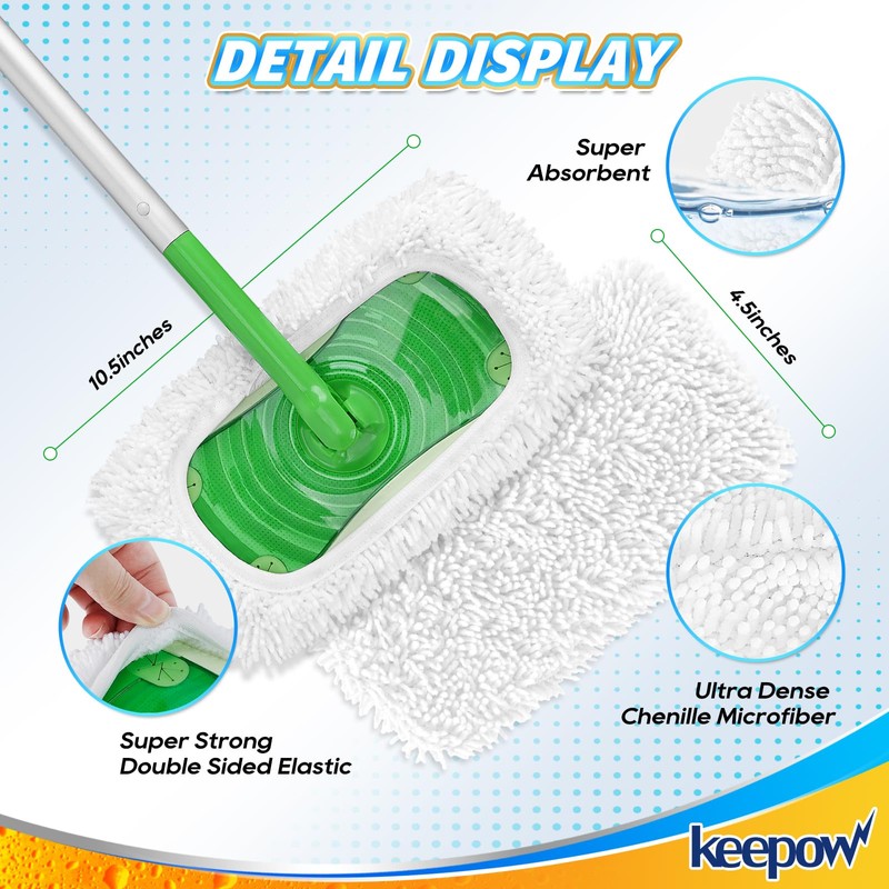 - Super cleaning power: for Swiffer wet floor cloths. With high quality microfiber and chenille material, they provide deep cleaning that picks up dust, dirt and pet hair and reaches every corner of your home