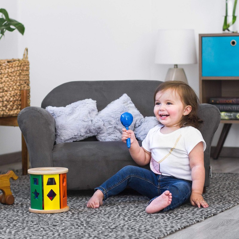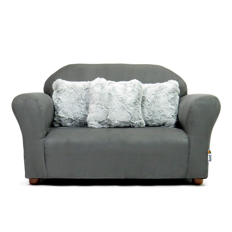 Keet Plush Childrens Sofa with Accent Pillows, Charcoal/Grey