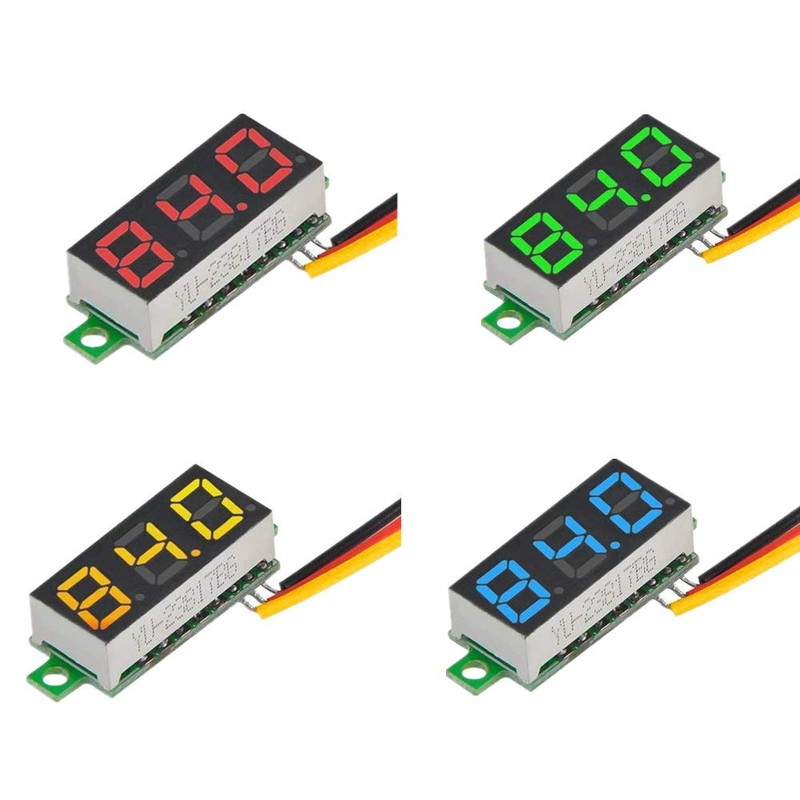 KeeYees 0.28 Inch Three Wires Mini Digital Voltmeter Panel DC 0V-100V Voltage Tester Meter LED Display Red Yellow Green Blue (4pcs)