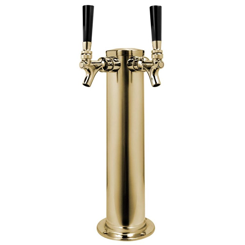 - Kegco's DT145-2B-ASC 14" tall polished brass draft beer tower comes with two matching stainless steel faucets and is a 100% stainless contact tower