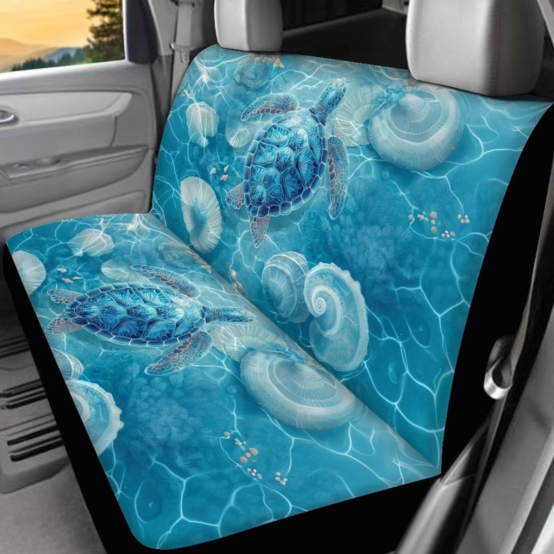 KEIAHUAN Blue Sea Turtle Front and Back Car Seat Covers Front Saddle Blanket Rear Split Bench Protection Cover Soft and Breathable Automotive Accessories Universal Fits Sedan Truck SUV