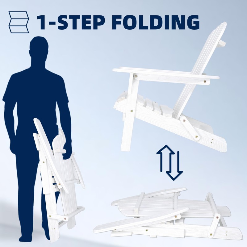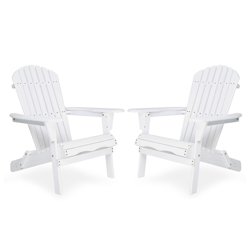 KEIKI Folding Outdoor Adirondack Chair, Set of 2, Embossed Fire Pit Chairs for Poolside, Backyard, Deck, Patio, Garden,White