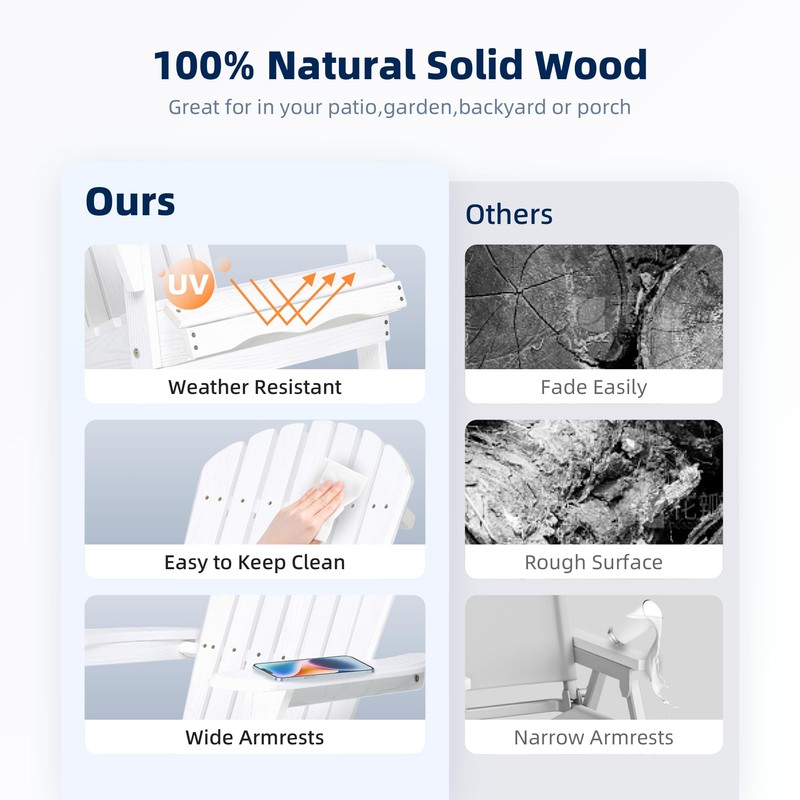 - All-Season Durability: Made from Premium Natural Hemlock Wood, naturally weather-resistant, lightweight yet sturdy (holds 300 lbs per chair), and ages beautifully to a silvery-gray patina. Kiln-dried wood and smooth sanded finish prevent splinters. Wide feet stabilize on uneven grass, decks, or poolside surfaces.