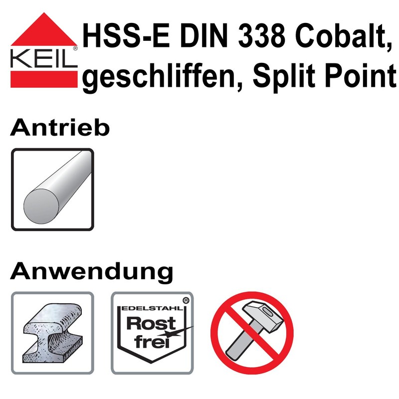 Keil Metal Drill Bit Set HSS-E DIN 338 Cobalt, Ground Split Point, Diameter 4...
