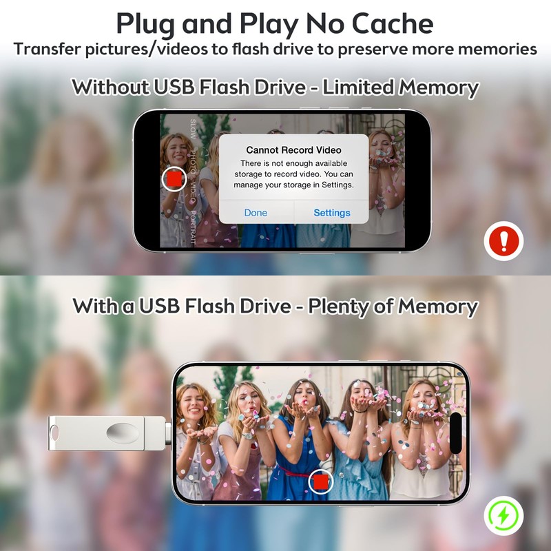 - 【i phone USB Stick Ihnen Hilft Sich von Unzureichendem Handyspeicher zu Verabschieden】USB stick i phone wurde entwickelt, um Speicherproblem zu lösen und Ihnen zu helfen, den Speicher Ihres Mobiltelefons freizugeben. Egal ob es sich um wertvolle Fotos/Videos oder Dateien handelt, die Sie für Ihre Arbeit benötigen, Sie können sie schnell auf einen usb stick i phone übertragen. Mit einem USB Stick können Sie jederzeit und überall auf Ihre gespeicherten Inhalte zugreifen, auch ohne Internetverbindung.
