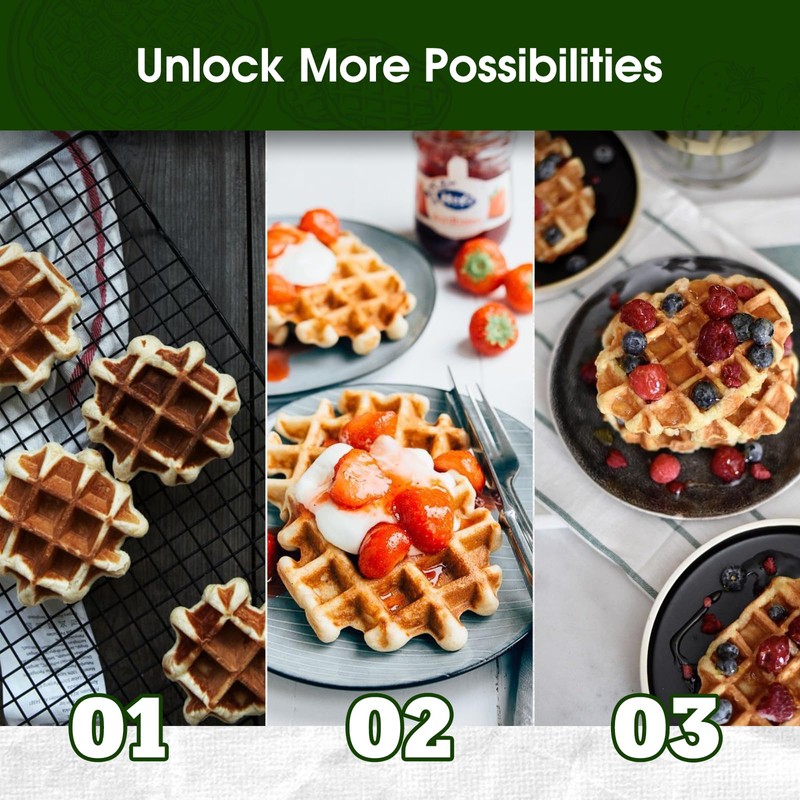 - Quick & Easy - Start your day effortlessly with this mini waffle maker. Its fast-heating design lets you cook 8 delicious mini waffle bites in just 1-2 minutes. The compact size ensures it fits perfectly in any kitchen and is easy to store.
