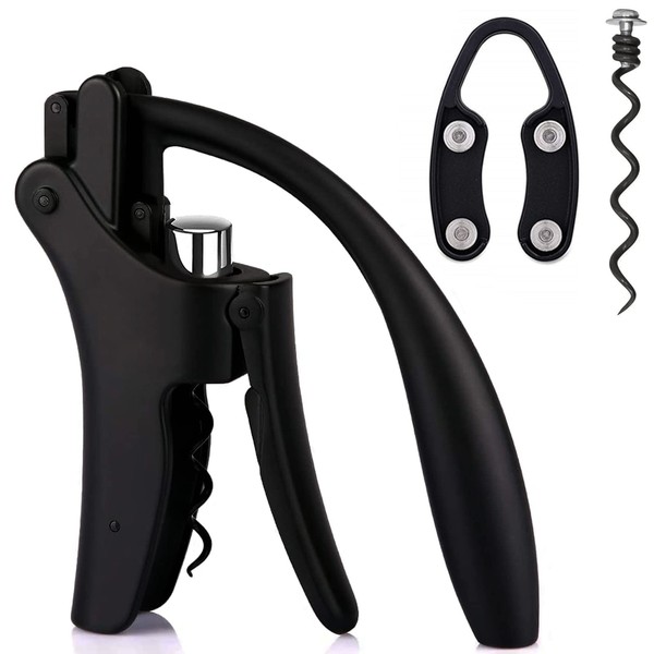 KEISSCO Compact Wine opener Vertical Lever Corkscrew Wine Bottle Opener with Foil Cutter & Extra Screw