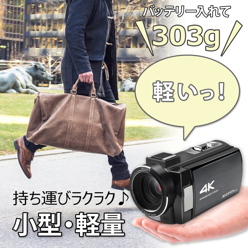 - Lightweight and Compact Size: This 4K camcorder is easy to carry around and weighs approximately 10.6 oz (303 g) in the palm of your hand. Whether you want to start YouTube or Mommy or Dad to take a video for your kids, you can easily carry it anywhere
