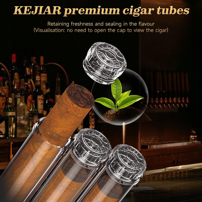 Protect your prized cigars in style with our high-end travel cigar tube, designed to preserve flavor and humidity for weeks. Crafted from military-grade transparent PC resin, this rugged yet sleek case features a built-in crystal gel humidifier and silicone sealing ring to maintain optimal moisture levels, ensuring your cigars stay fresh and aromatic wherever you go.
