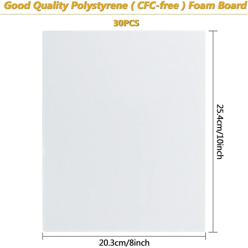 30 Pack Foam Boards 10x8 inch White Foam Boards Baking Board Mat Board Center 3/16in(5MM) Thick Crafts Foam Sheet Polystyrene Poster Boards for Projects Art Display
