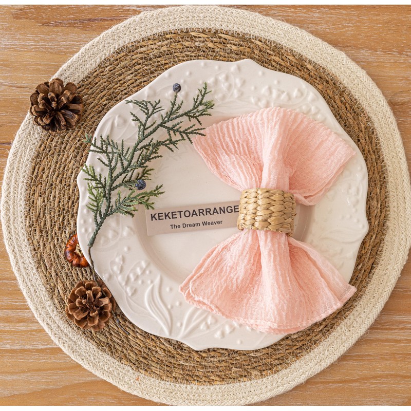 - 【Package Includes】10 Cloth napkins( 17 x 17 inches) and 10 sisal ropes all neatly packed in a transparent plastic bag.