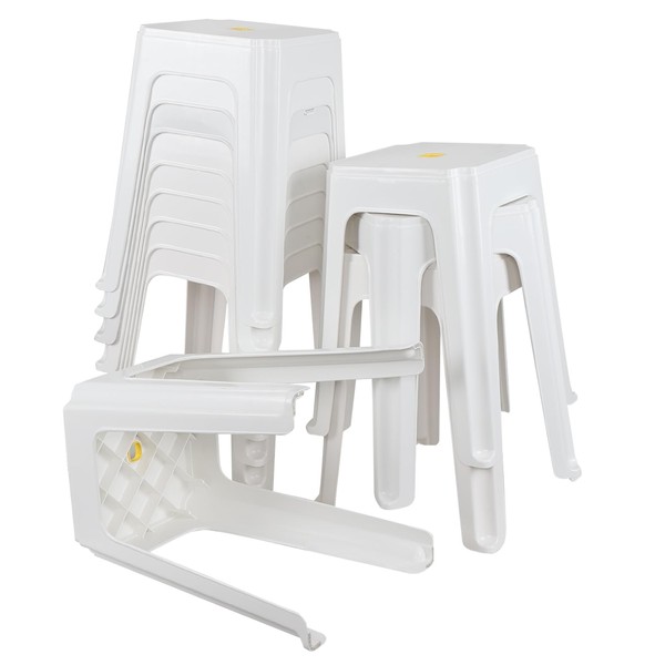 Kekow 12-Pack 18.7 inch Height Home Plastic Stool, Square Portable Stackable Plastic Seat Stool, White