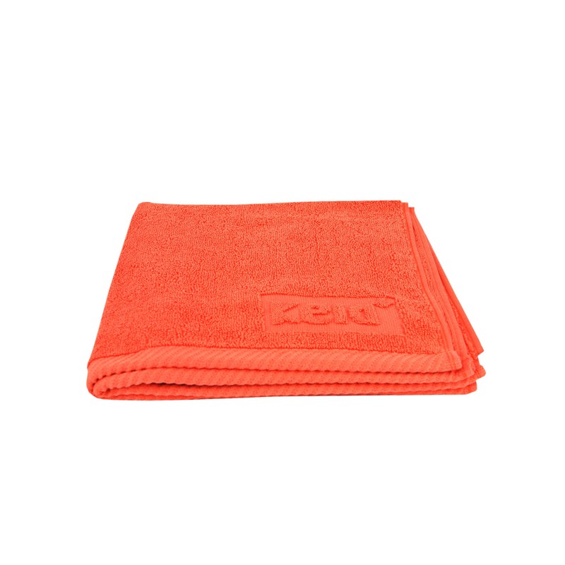 The modern and very chic Kela design clearly impresses with the implementation and great workmanship of the towels. All three towels shine in different, harmonious red tones. The one in a bold red, the second in a delicate coral tone and the third in a mottled mix of the two other tones. Each of the towels has been decorated with a Kela logo in the corner.