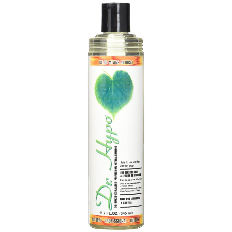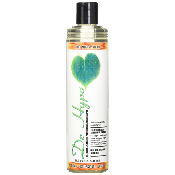 Dr. Hypo Shampoo is a 50: 1 hypoallergenic highly concentrated tearless shampoo that doesn't contain any soap or detergent. Dr. Hypo is excellent for cleaning tender areas like around the eyes yet strong enough to remove odors, dirt, and grease without aggravating sensitive skin. Dr. Hypo is mild, pH balanced, natural, biodegradable and safe to use with flea control drops.