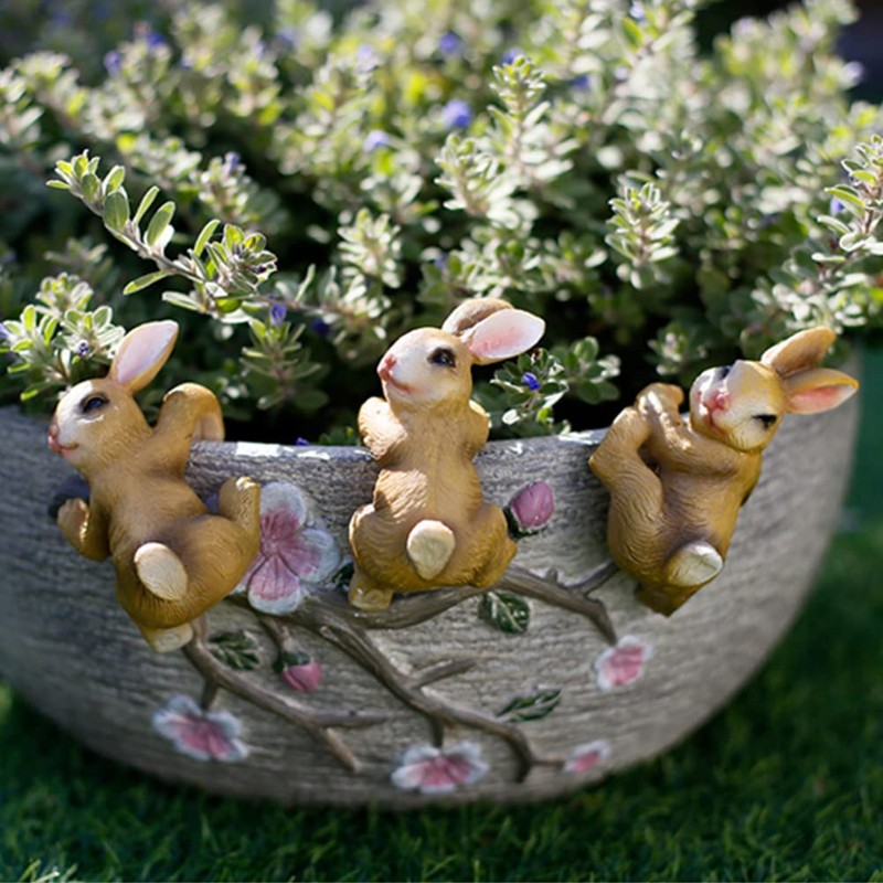 - HANGING & CARTOON DESIGN: Crafted of resin to greatly enhance its stability and durability for a long service life. Designed like 3 climbing rabbit shapes with vivid expression and erect ears to create cute and realistic appearances. Their legs naturally form hooks to allow for stable hanging on most types of flower pot's edge. Portable size and textured surface provide you excellent touch feeling to move around with ease, better satisfy your various needs