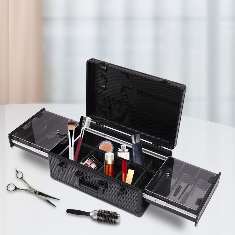 - 【Large Capacity】 This barber case concludes two blade/guard caddies for your scissors and other sharp objects, an interior tray for combs. In addition, there is a drawer on each side of the case, and there are many compartments at the bottom. Such a large capacity allows you to store many items and also facilitates you to classify items.