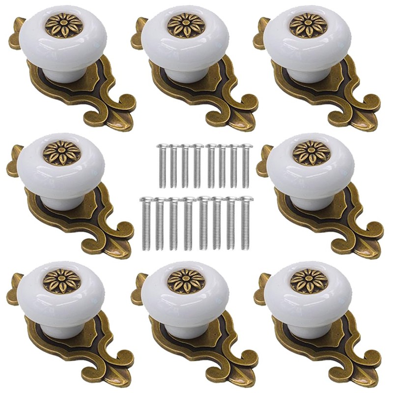 Kelier Retro Ceramic Cabinet Knobs, [8 Pack] Antique Vintage Dresser Knobs with Backplate, Drawer Pull Handles for Kitchen/Dresser Drawer/Cupboard/Wardrobe (8 Pieces, White)
