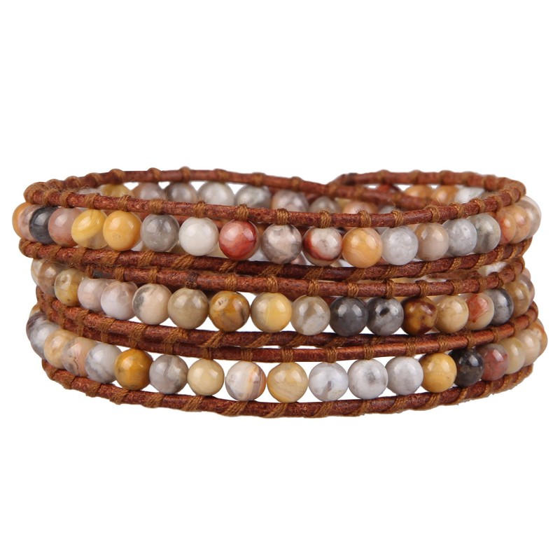 KELITCH Armbänder Freundschaft Frau Verrückt Spitze Achat Stein 3 Wickeln Leder Armband Zum Männer Mädchen