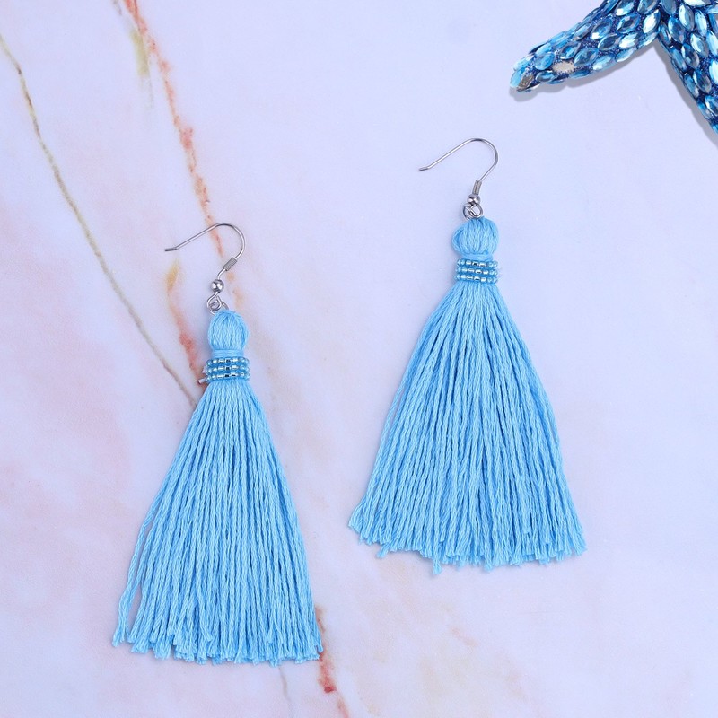 KELITCH Bohemian Tassel Earrings 925 Silver Pendant Earrings Handmade Colour Tassel Earrings for Women, Cotton Fabric Cotton, Pearl