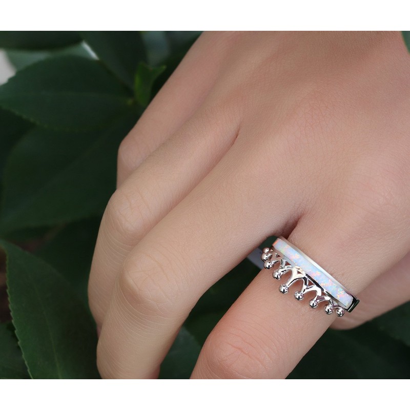 KELITCH Crown Band Rings Synthetic Opal Openwork Midi Ring for Your Girlfriend (White, 9), Bead, No-Gem-Tye