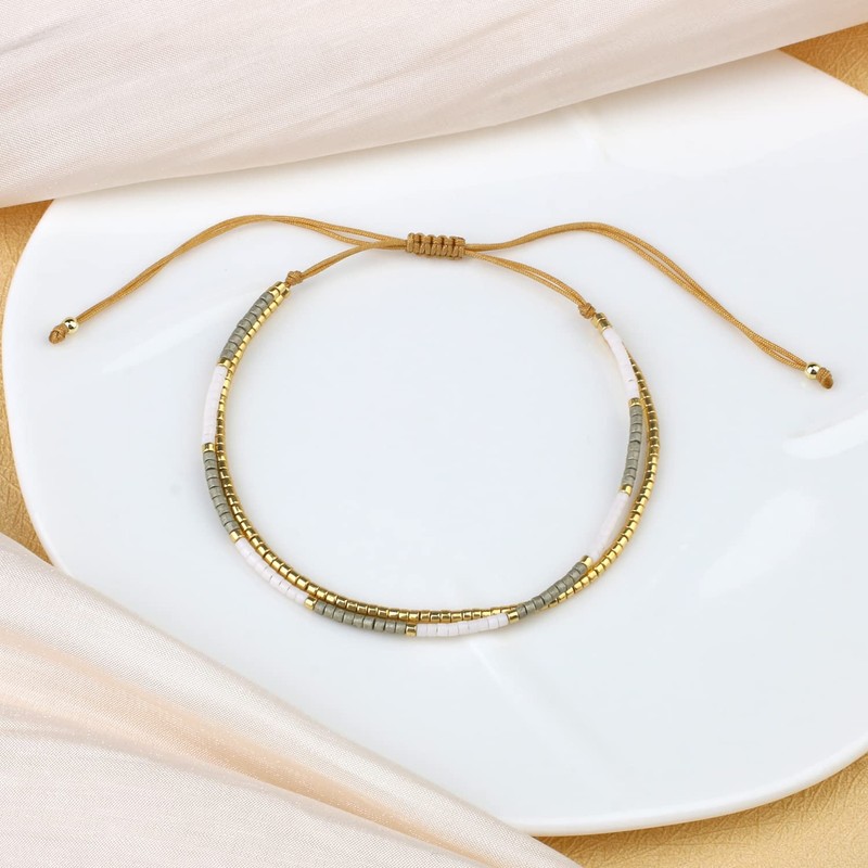 KELITCH Miyuki Bead Bracelets Double Strand Bracelets Adjustable Women's Charm Bracelets Chic Style, Miyuki, No-Gem-Tye