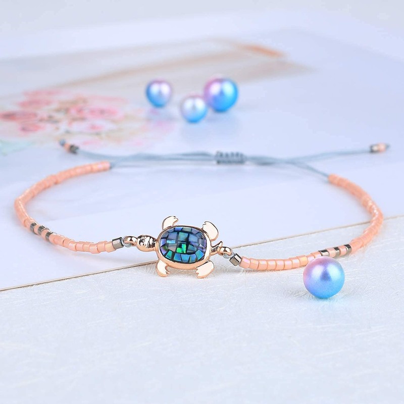Kelitch Miyuki Beads Abalone Turtle Wrap Bracelets Friendship Bracelet New Turtle Adjustable Bracelets, pink