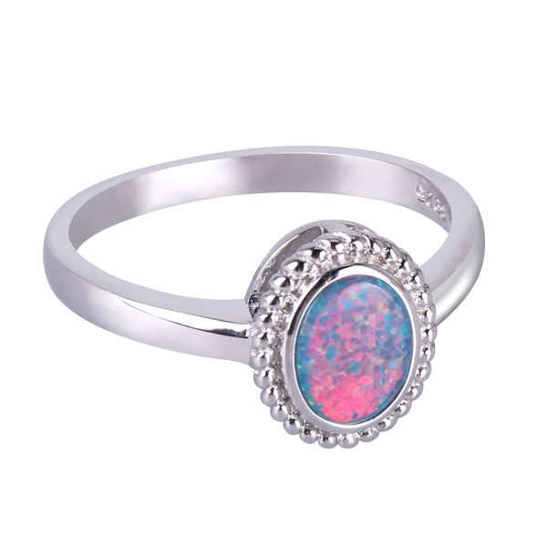 KELITCH Synthetic Opal Silver Ring Handamde Egg Round Ring for Women (Red, 8), Opal