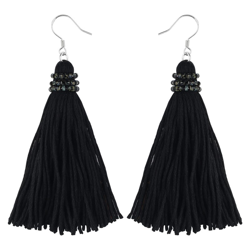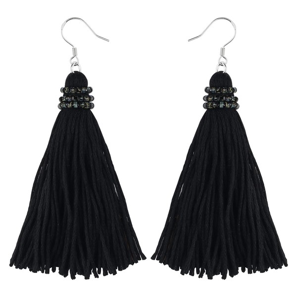 KELITCH Women's Drop Dangle Earrings Tassel Earrings Thread Tassel Dangle Statement Summer Beach (Cool Black)