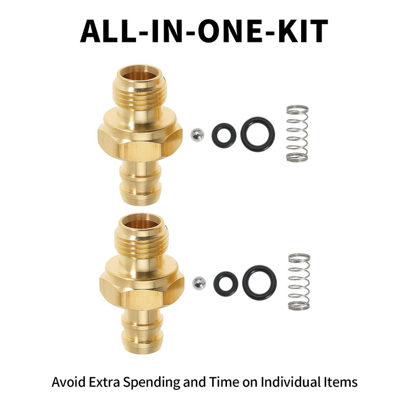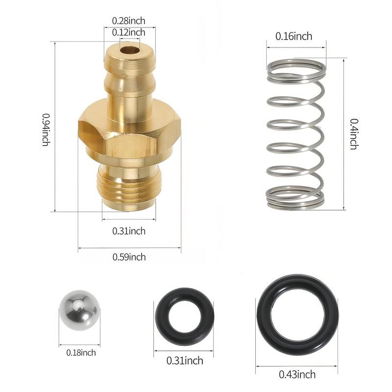 - package include 2 fittings, 2 check valve balls, 2 springs, 4 o-rings. Standard 1/8" -27 male BSP thread fittings which allows for easy integration with most pressure washers.