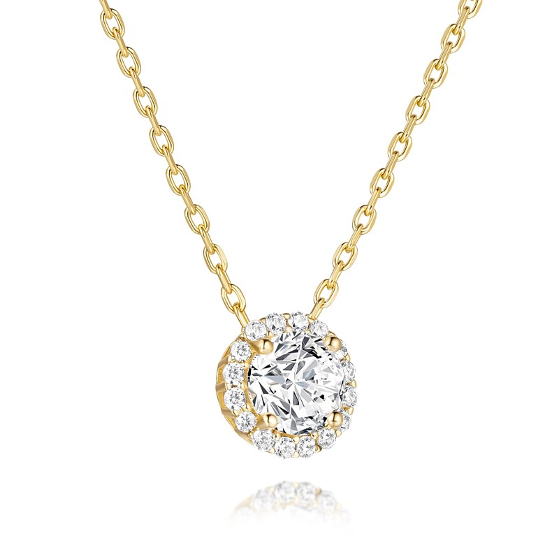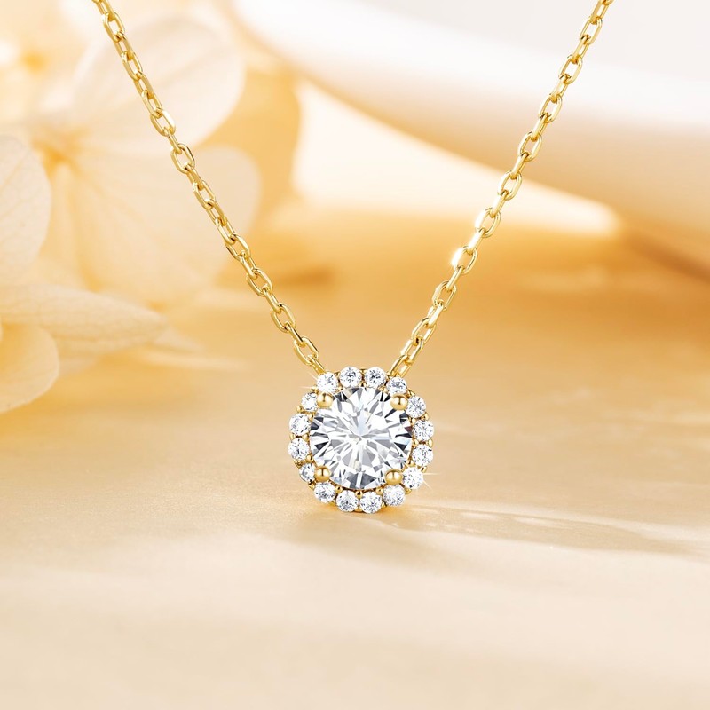 Kelli Myers 14K Gold Necklace for Women Crystal Solitaire 1.5 Carat CZ Gold Pendant Necklace Womens Jewelry