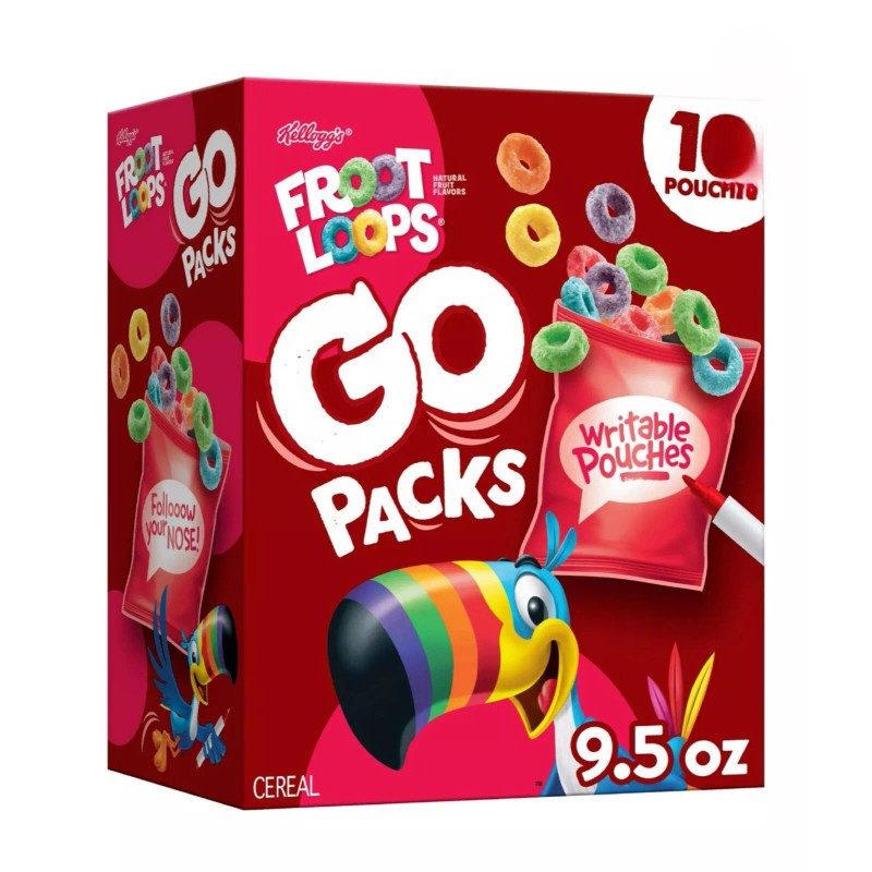 Kellogg's 🔵 New Kelloggs Froot Loops Fruit GO Packs 10 Pouches Snack Bags 12oz