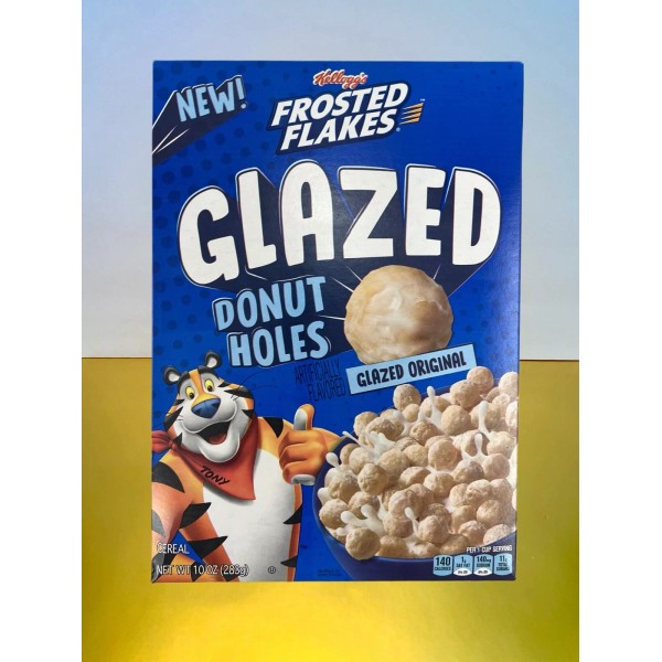 Kellogg's New Kelloggs Frosted Flakes GLAZED Donut Holes Original Cereal Box 10oz