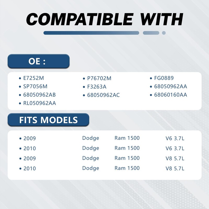 - [Replace Part Number]: E7252M, P76702M, FG0889, SP7056M, F3263A, 68050962AA, 68050962AB, 68050962AC, 68060160AA, RL050962AA