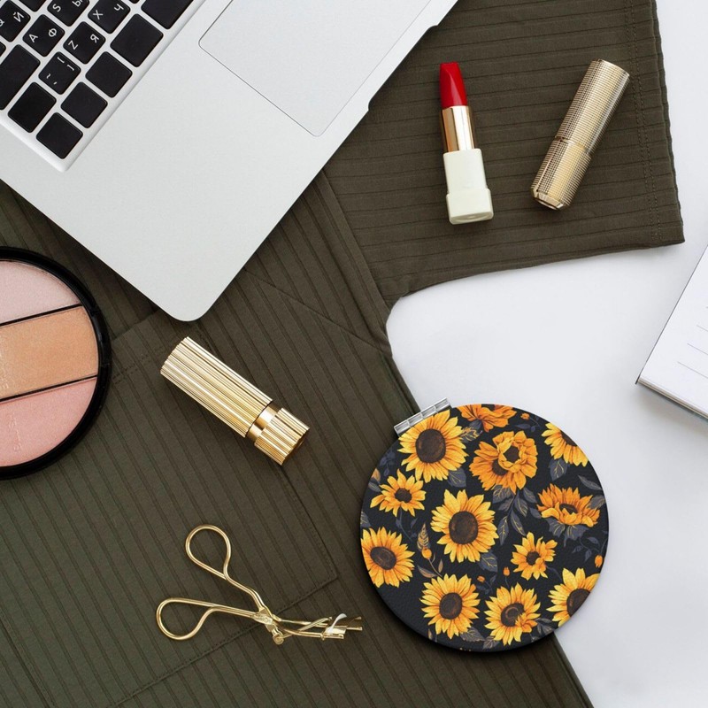 keluki Sunflower Style6 Print Foldable Travel Pocket Mirror Round PU Leather Portable Mini Makeup Double Sided Handheld Magnifying,2.6 in