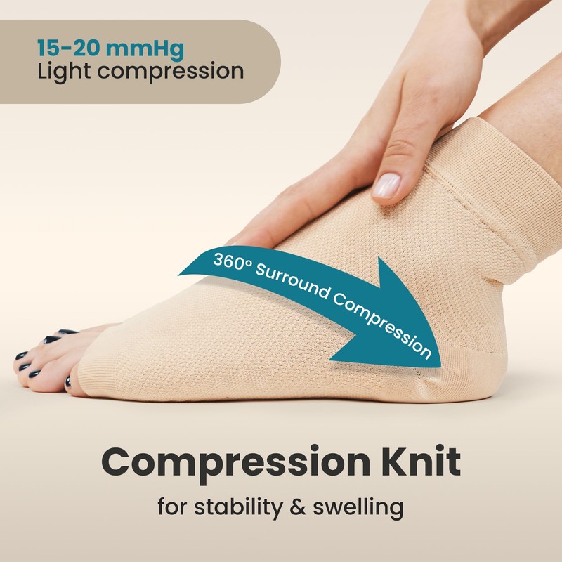 - Ankle Pain Relief - Wear these ankle compression sleeves under your shoes and socks for pain relief in your heels caused by plantar fasciitis, injury, sprained ankle, Achilles tendonitis, edema, heel spurs, varicose veins, fallen arches, lymphedema, swollen ankles. Our toeless ankle sleeve supports your leg all day