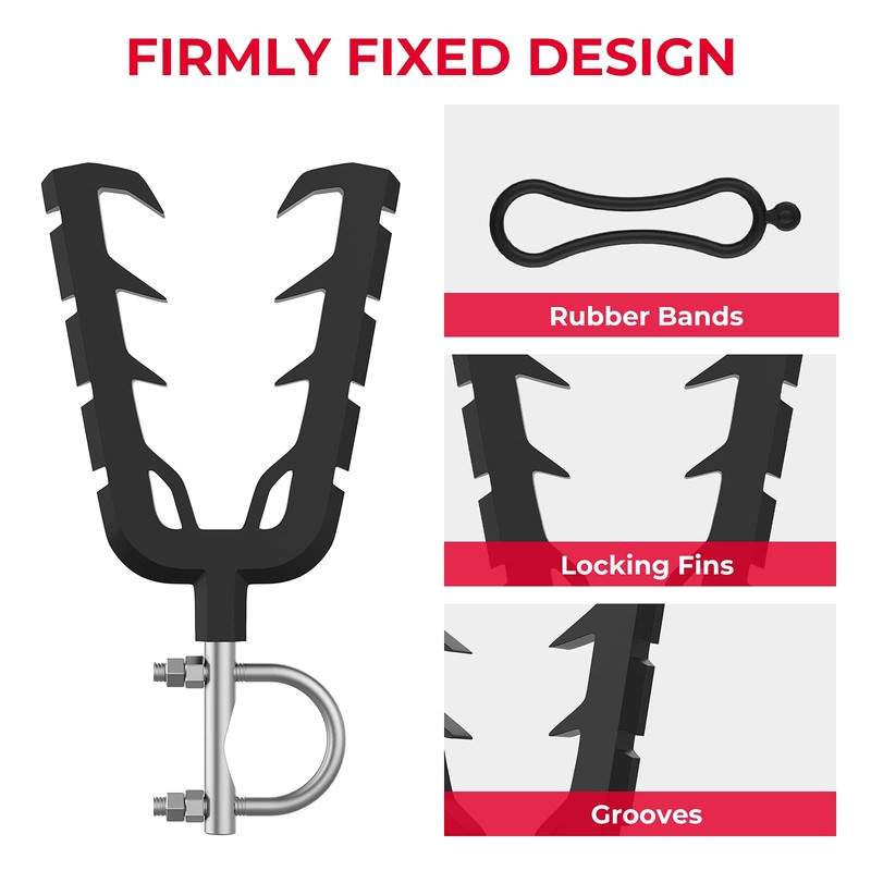 - 【Thick Rubber Coating & Fins】The gun holder for ATV has a strong rubber finish and a fin cushion that fits your gear well. The rubber straps could fit into different notches to secure your gun even on rough terrain.