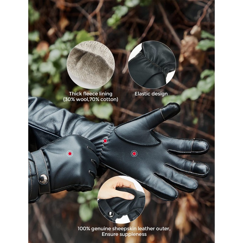 - Genuine Leather:KEMIMOTO Winter Gloves has soft lining and genuine leather outer, ensure suppleness, strength, and comfort during use. Protect your hands from the freezing steering wheel/shift lever and provide flexible meanwhile