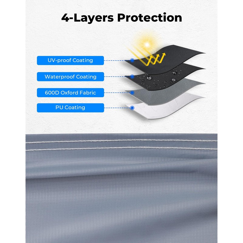- 600D Heavy Duty Fabric: The 600D golf cart rain cover is made of high-quality polyester Oxford cloth. The double waterproof coating and reinforced seams provide excellent protection and tear resistance, resisting harsh weather such as storms, sun exposure, dust, and fog