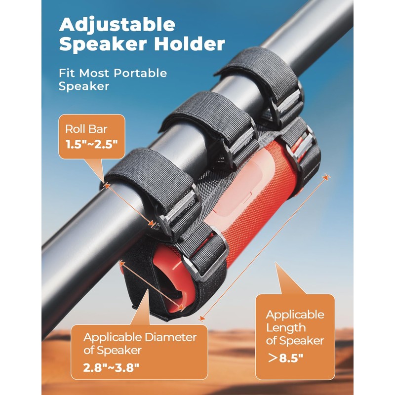 - 【Easier Button Control】2-strap style of Kemimoto Roll Bar Speaker Holder will expose the control button and let you operate your speaker easier and stop your speaker from pressing like other one strap style mount.