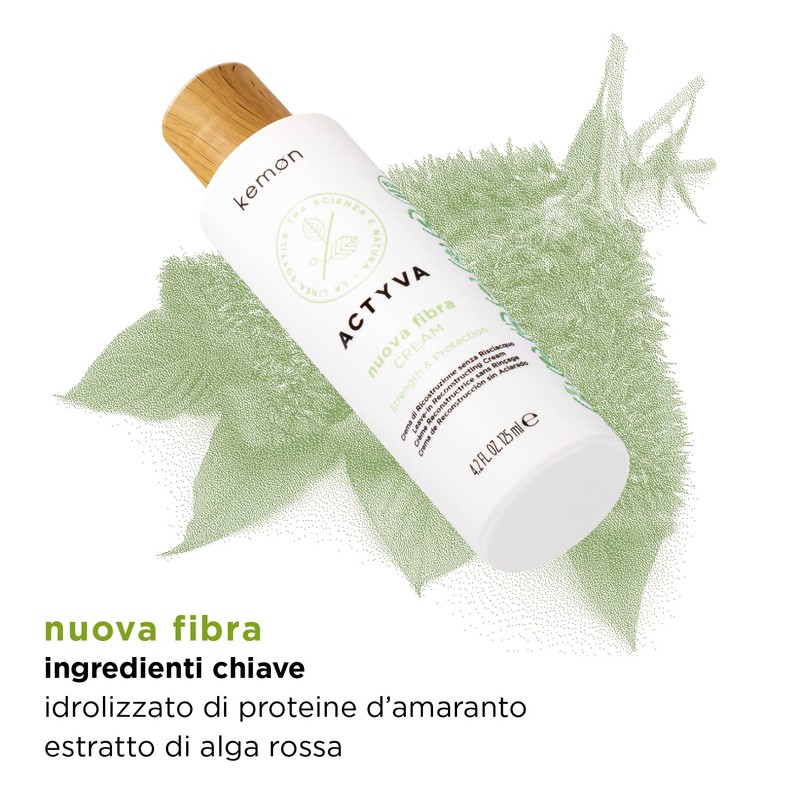 Kemon - Actyva New Fibra Cream, Restructuring Treatment Cream for Damaged Hair with Amaranth and Red Algae, No Rinse - 125 ml