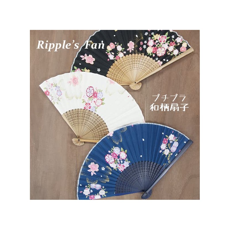 Ken Onishi Folding Fan Ripple Petit Plaque Print Fan 8.3 inches (21 cm) Women's, Sakura/Black