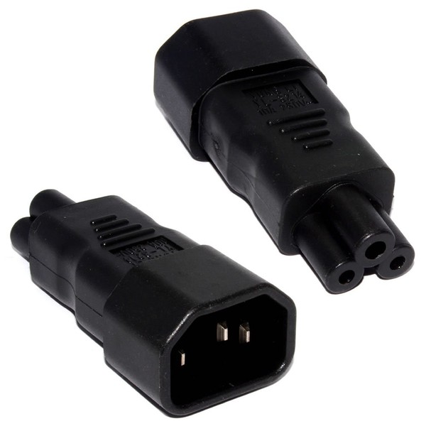 Convert a standard IEC plug C13 to a Clover leaf C5 plug - The C13 IEC plugs directly into the C14 Socket and gives you a C5 3 pin cloverleaf mickey mouse shape connection. Description